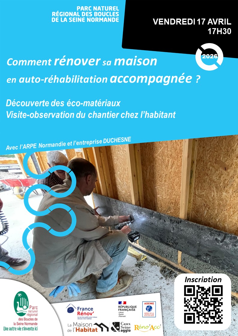 Le Parc naturel régional des Boucles de la Seine Normande organise la visite d’un chantier d’isolation réalisé en auto-réhabilitation accompagnée le vendredi 17 avril, de 17h30 à 19h à Arelaune-en-Seine (76).