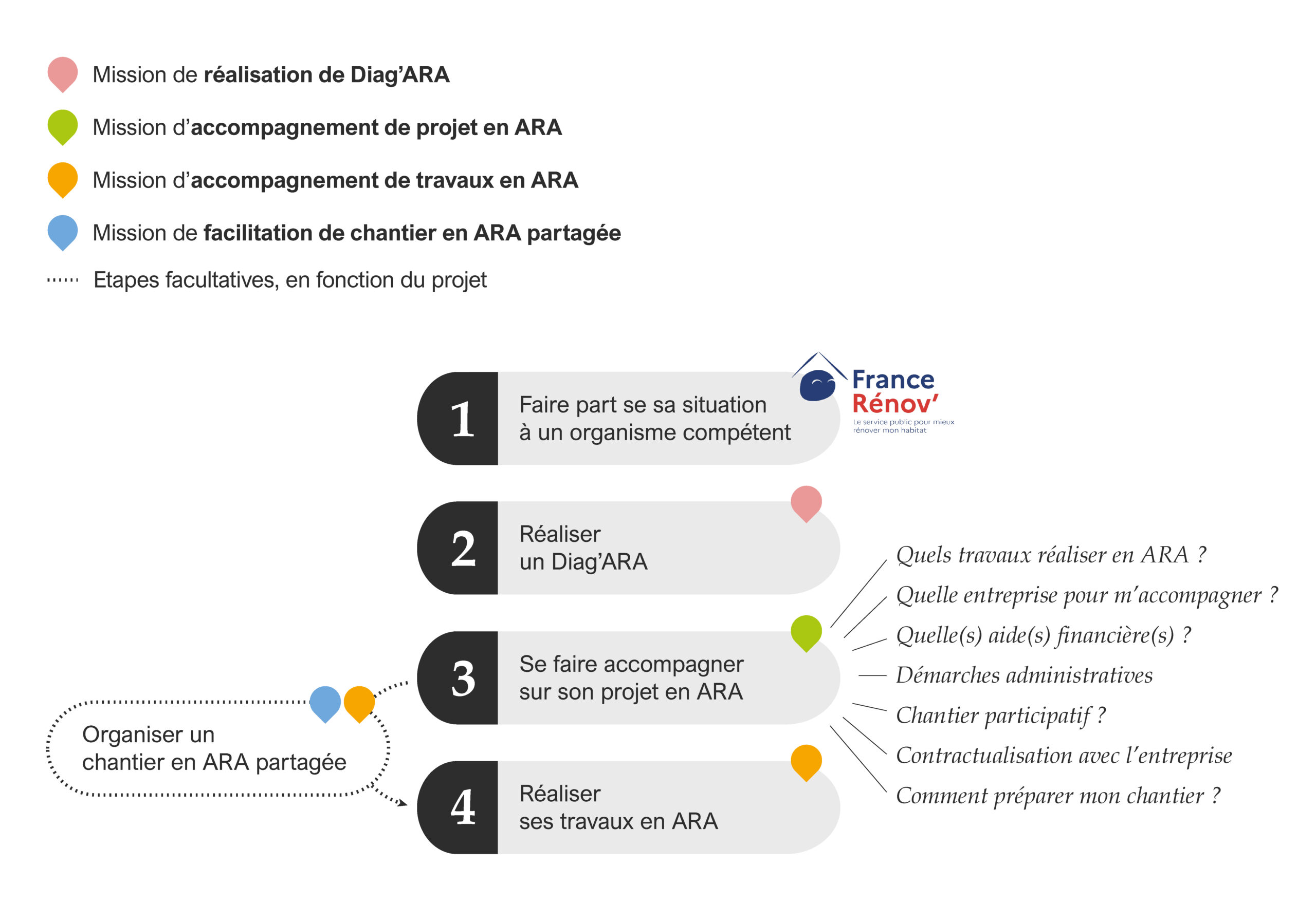 En contractualisant une convention d’ARA partagée avec madame FRANÇOIS, l’association se chargera d’approvisionner le chantier en matériaux, de trouver des bénévoles, de mettre à disposition des outils, de s’assurer des conditions de sécurité sur le chantier en proposant une couverture assurantielle et la présence d’un animateur de chantier. De son côté, madame FRANÇOIS participe activement au chantier et accueille les bénévoles en offrant convivialité, café et repas aux bénévoles venus l’aider.